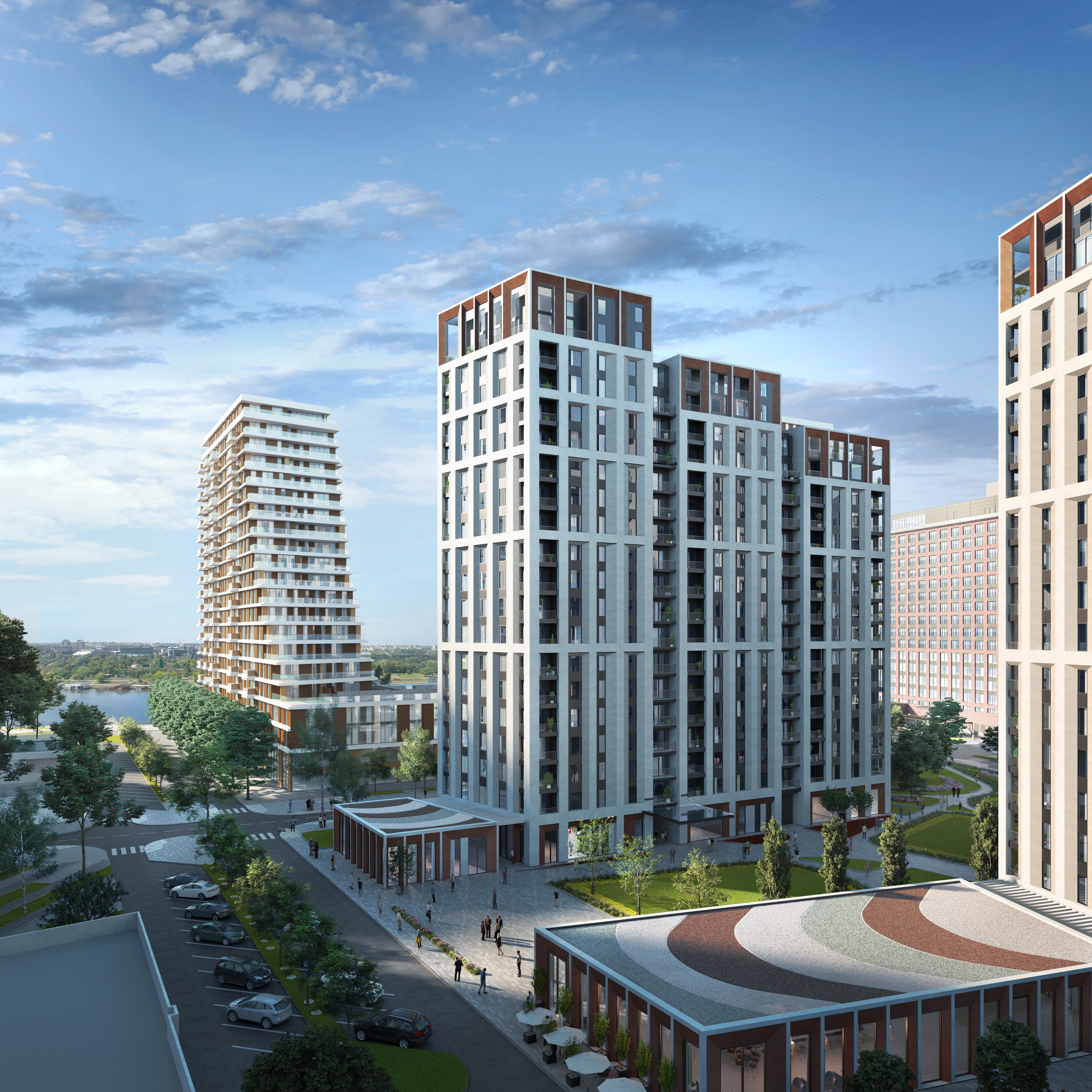 Residential and commercial building within Block 15, Belgrade Waterfront, designed as two parallel towers connected through shared infrastructure and ground-level activation. The project responds to strict urban constraints while organizing program, circulation, and massing into a coherent and efficient system