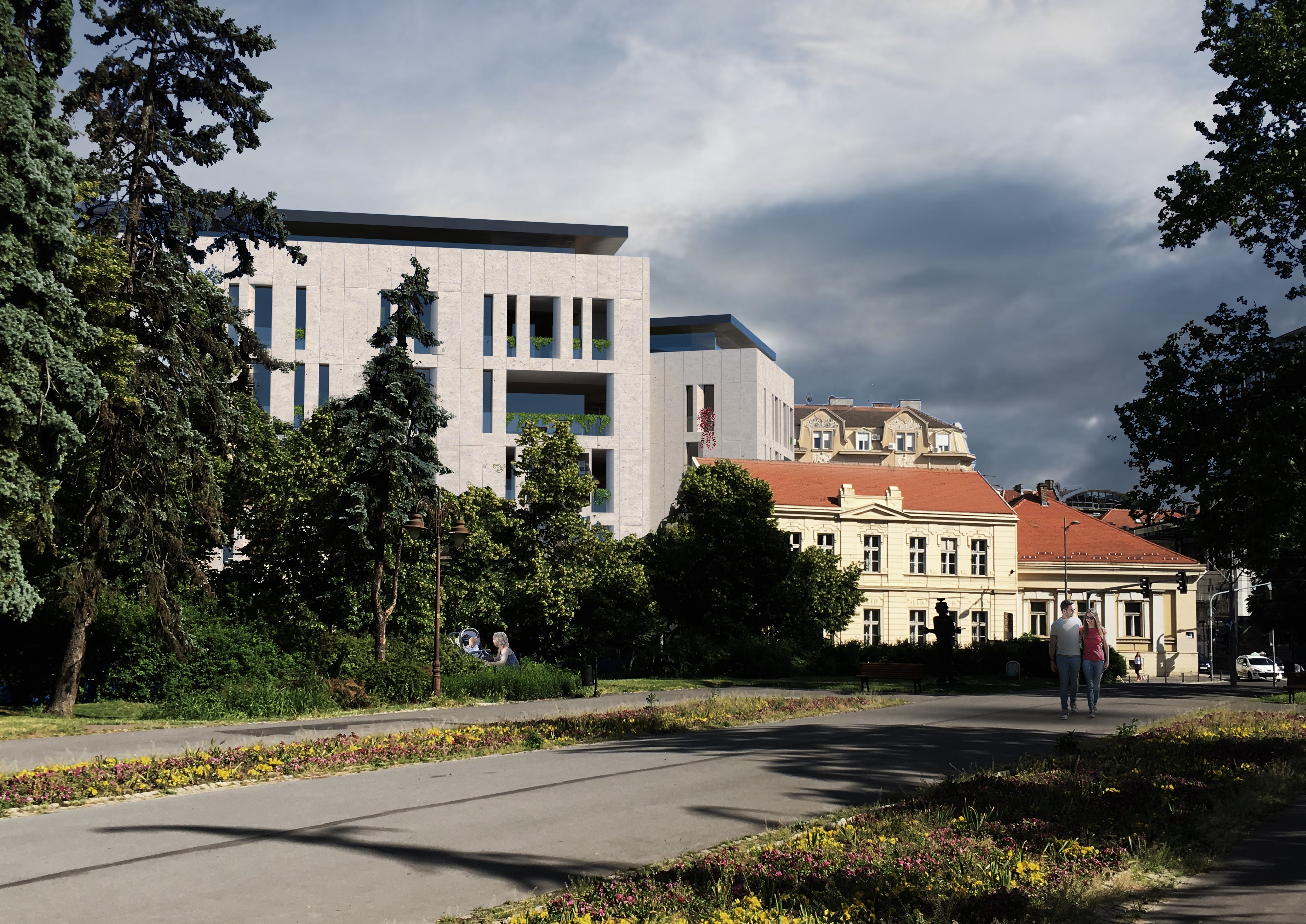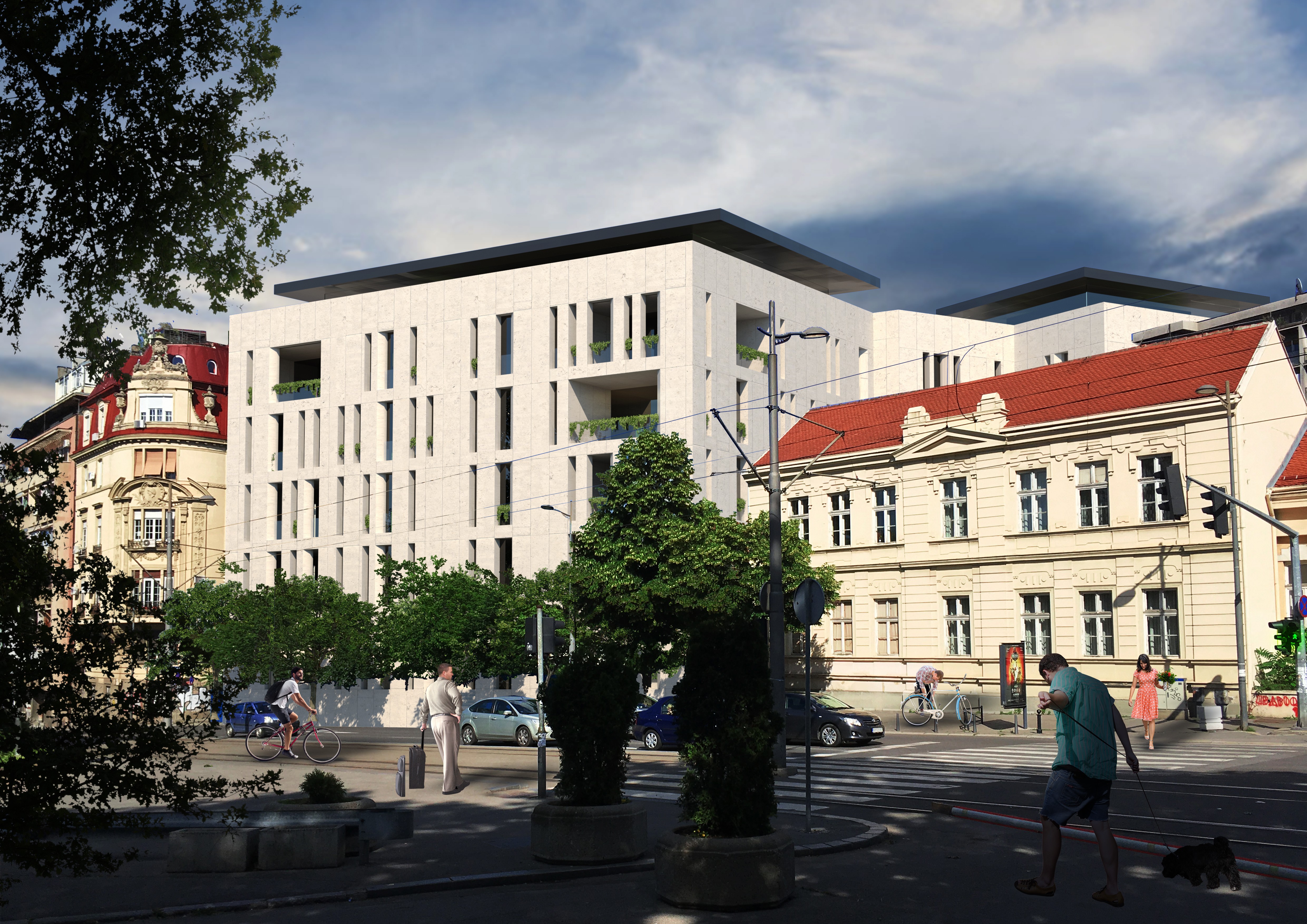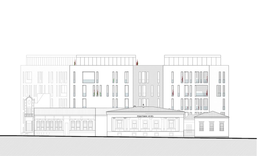 Located in Belgrade’s historic inner core near Kalemegdan, the site is defined by a mix of architectural styles from different periods, with a strong presence of neoclassical buildings. The project responds to this layered context and its sensitive urban character.