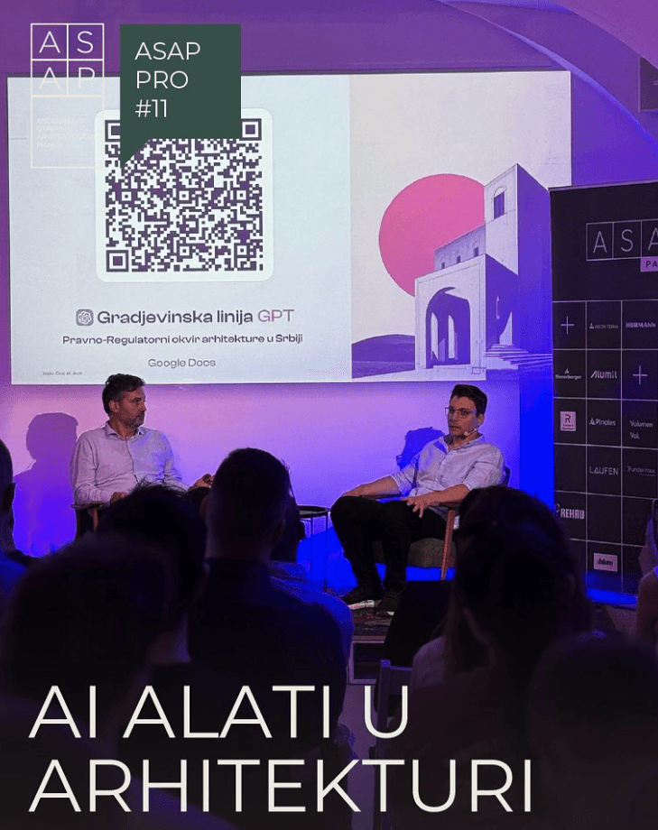 "Veljko Ćirić delivered a clear and thoughtful lecture on how AI can support architectural practice without compromising creative judgment. His approach clearly articulated how AI can support research, documentation, and communication, while emphasizing the importance of maintaining critical judgment and creative intuition in the design process. What we particularly valued was the focus on a gradual, bottom up adoption of AI tools, grounded in real needs and practical challenges faced by architectural teams."