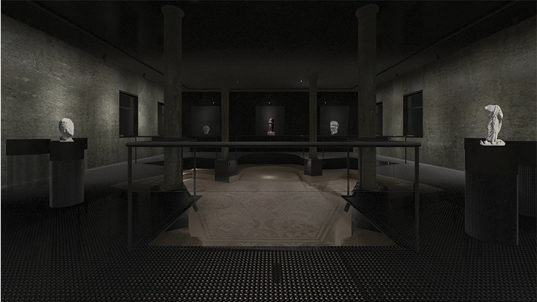 Contemporary museum intervention that introduces a lightweight architectural layer above archaeological remains, creating a dialogue between past and present.