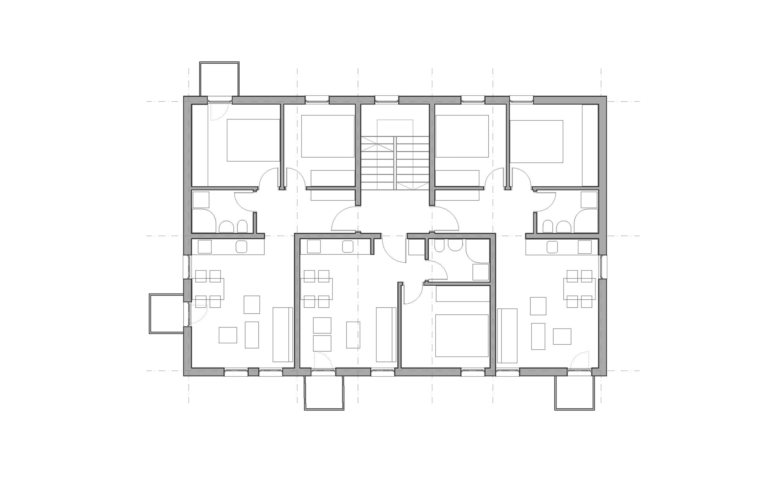 The building integrates residential and commercial programs with a focus on clarity, accessibility, and efficient circulation. Massing and orientation respond to site conditions, optimizing daylight, access, and structural simplicity while maintaining a strong architectural identity.
